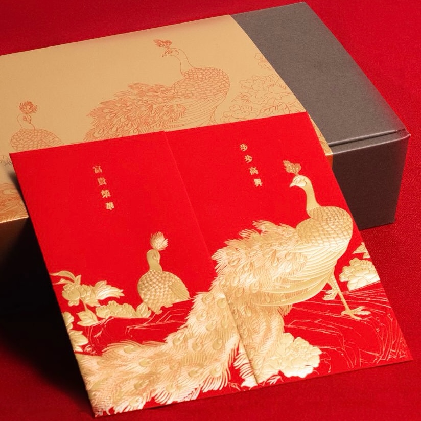 燙金孔雀利是封兩包共20封